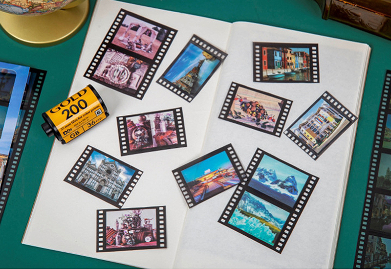 Die Foto Film Sticker sind aus PET und können auf verschiedenen Oberflächen zum Basteln und Dekorieren benutzt werden. Ideal für Scrapbooking, Stationery, Journal, Tagebuch, DIY-Projekte, Briefumschläge, Geschenkverpackung, Fotoalben und zum Verzieren von Laptops und Smartphones.