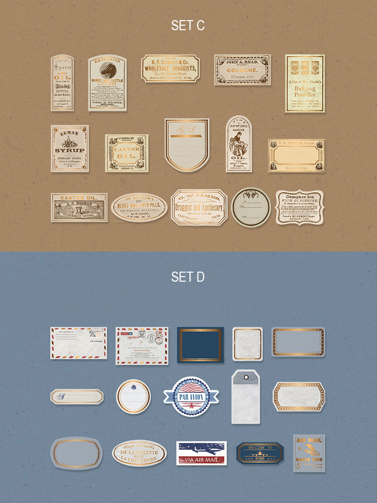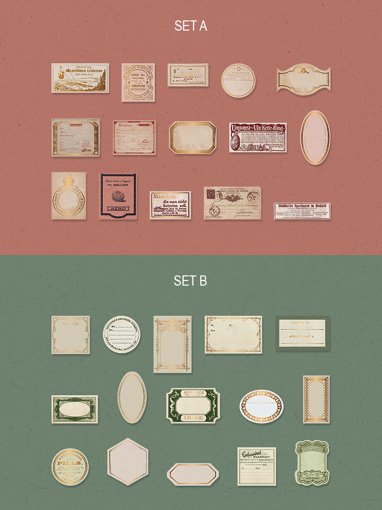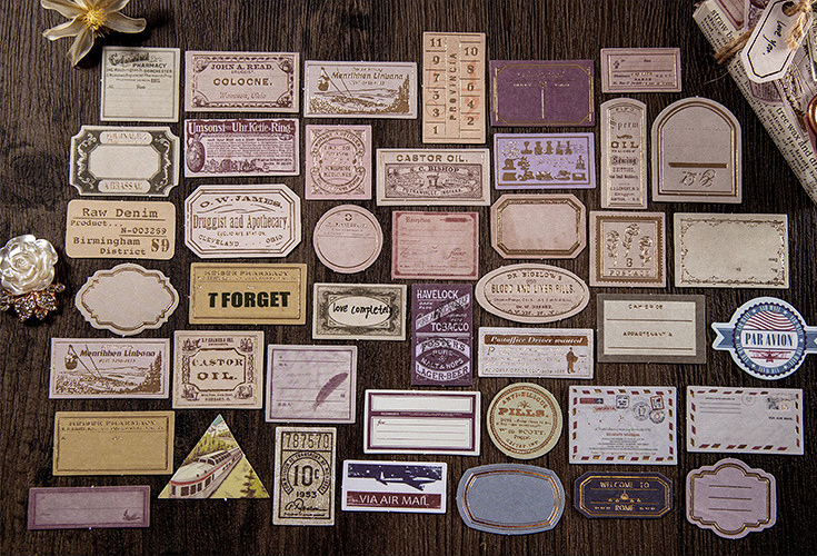 Die Vintage Label Sticker sind aus Papier und können auf verschiedenen Oberflächen zum Basteln und Dekorieren benutzt werden. Ideal für Scrapbooking, Stationery, Journal, Tagebuch, DIY-Projekte, Briefumschläge, Geschenkverpackung, Fotoalben und zum Verzieren von Laptops und Smartphones.