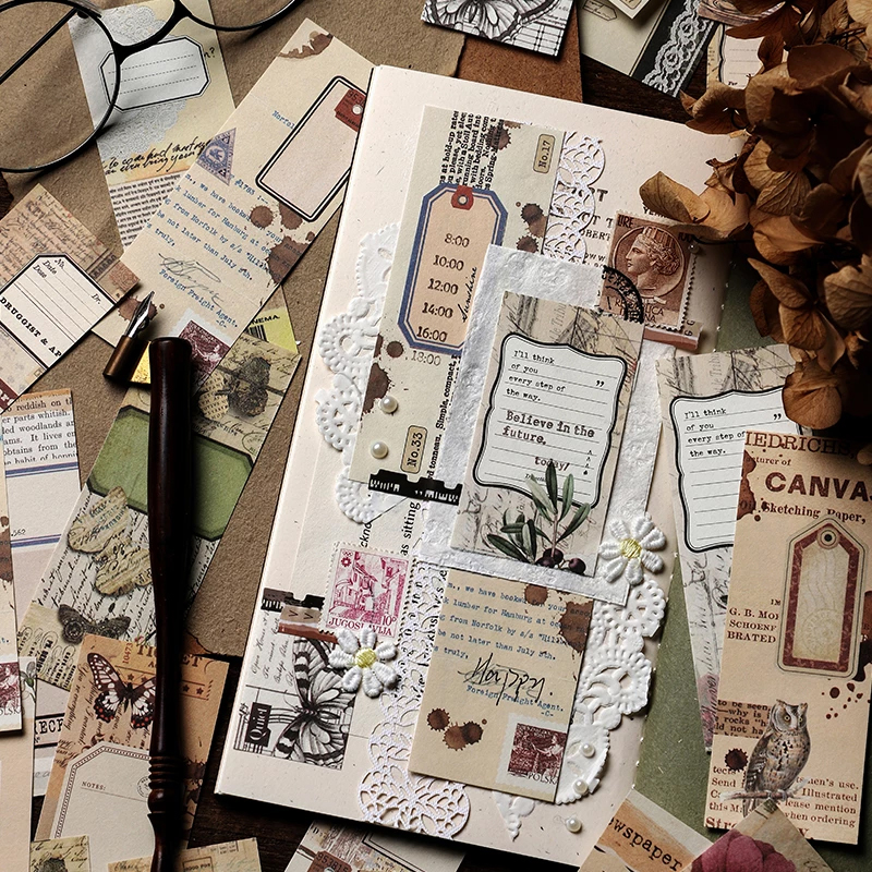 40 Retro Papierfragmente – Scrapbooking, Stationery, Journal, Tagebuch, Papierwaren