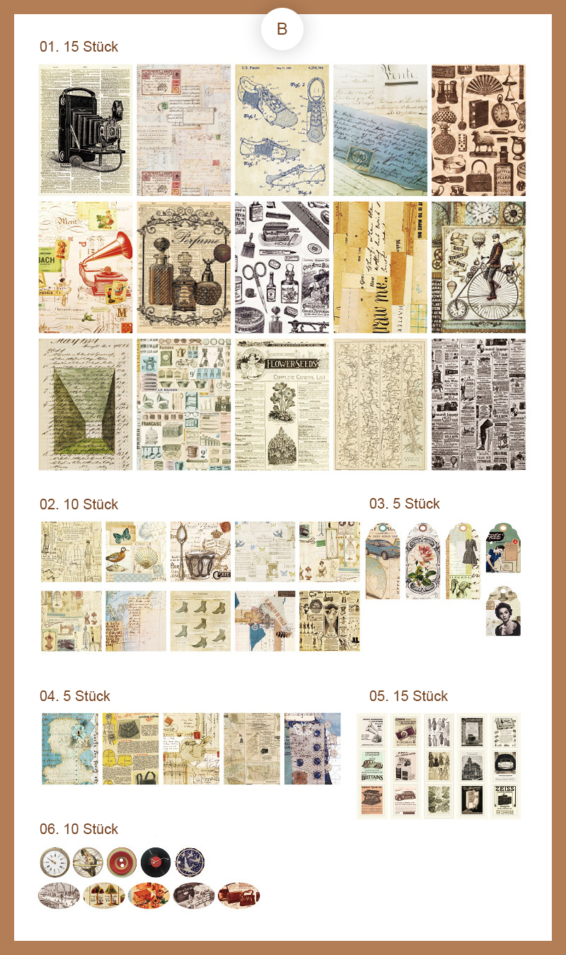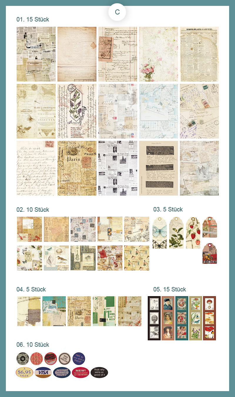 Die Sticker, Papierfragmente & Hangtags sind aus Papier und können auf verschiedenen Oberflächen zum Basteln und Dekorieren benutzt werden. Ideal für Scrapbooking, Stationery, Journal, Tagebuch, DIY-Projekte, Briefumschläge, Geschenkverpackung, Fotoalben und zum Verzieren von Laptops und Smartphones.
