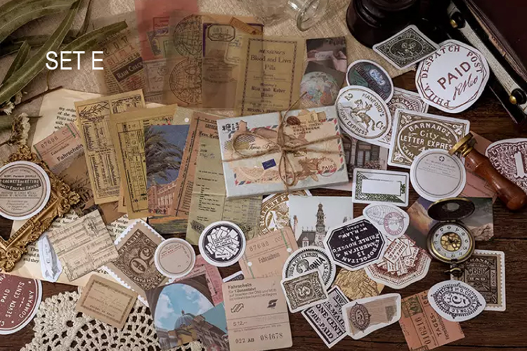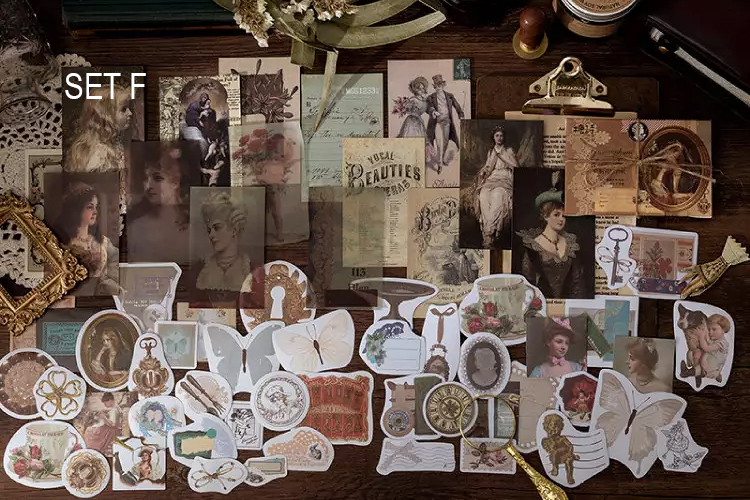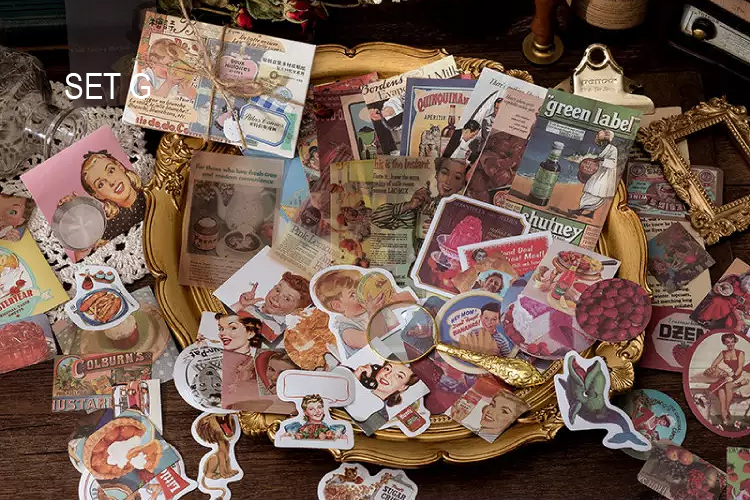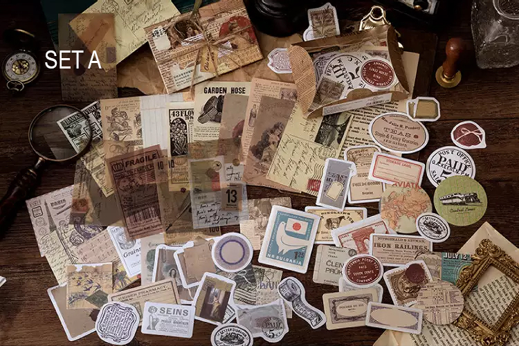 60 Sticker & Papierfragmente, Retro Memories Serie – Scrapbooking, Stationery, Journal, Tagebuch, Papierwaren
