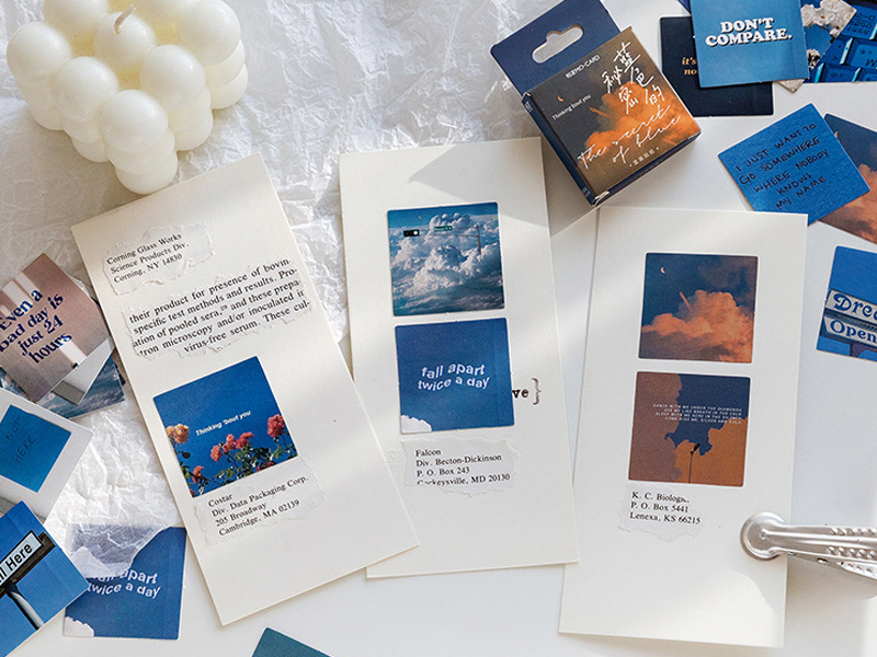 Die Blaue Sticker können auf verschiedene Oberflächen zum Basteln und Dekorieren benutzt werden. Die Sticker sind ideal für Scrapbooking, B-Journal, DIY-Projekte, Briefumschläge, Geschenkverpackung, Fotoalben und zum Verzieren von Laptops und Smartphones.
