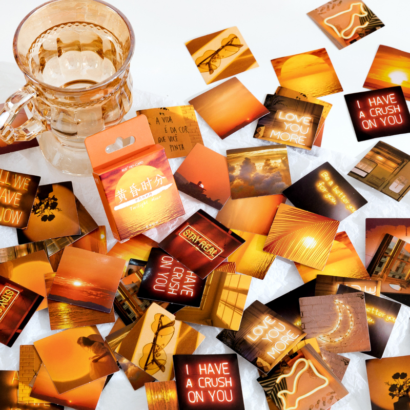 Die Dämmerungsstunde Sticker können auf verschiedene Oberflächen zum Basteln und Dekorieren benutzt werden. Die Sticker sind ideal für Scrapbooking, B-Journal, DIY-Projekte, Briefumschläge, Geschenkverpackung, Fotoalben und zum Verzieren von Laptops und Smartphones.