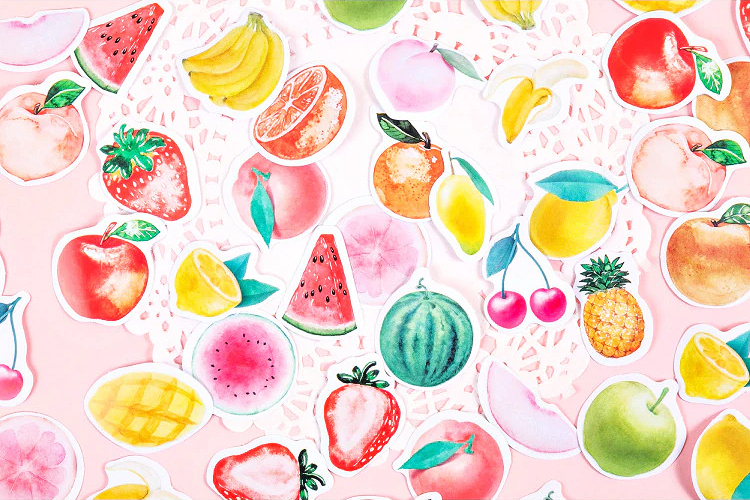 Die Früchte Sticker können auf verschiedene Oberflächen zum Basteln und Dekorieren benutzt werden. Die Sticker sind ideal für Scrapbooking, B-Journal, DIY-Projekte, Briefumschläge, Geschenkverpackung, Fotoalben und zum Verzieren von Laptops und Smartphones.