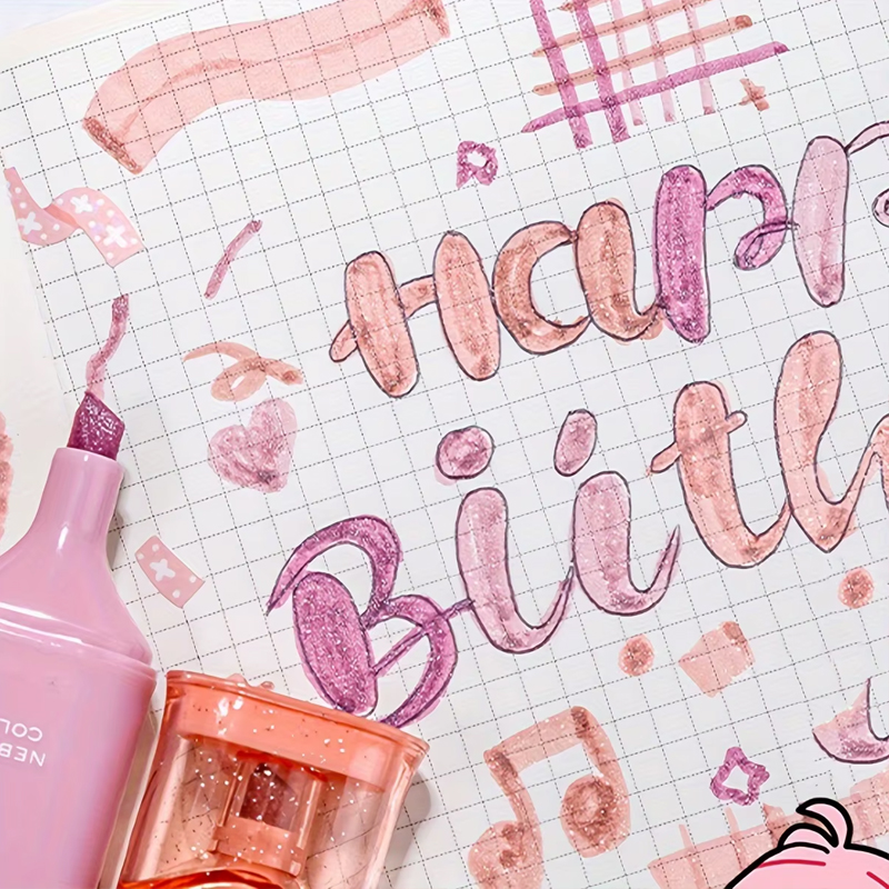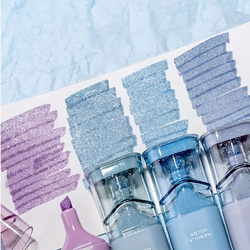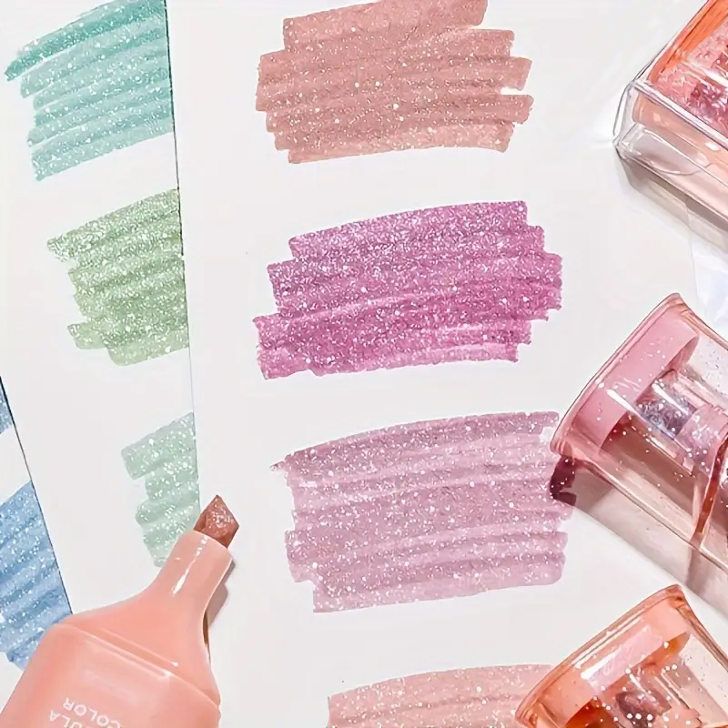 Diese stylischen Glitzer Highlighter im Kawaii-Design sind auch ein tolles Geschenk für alle Schreibwaren-Liebhaber:innen und kreative Köpfe. Die zarten Farben erinnern an beliebte Macaron- und Morandi-Töne und sorgen für ein elegantes, pastelliges Finish.