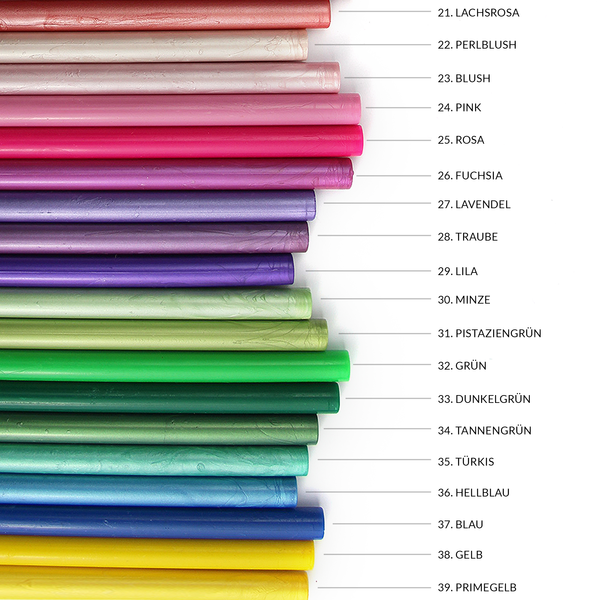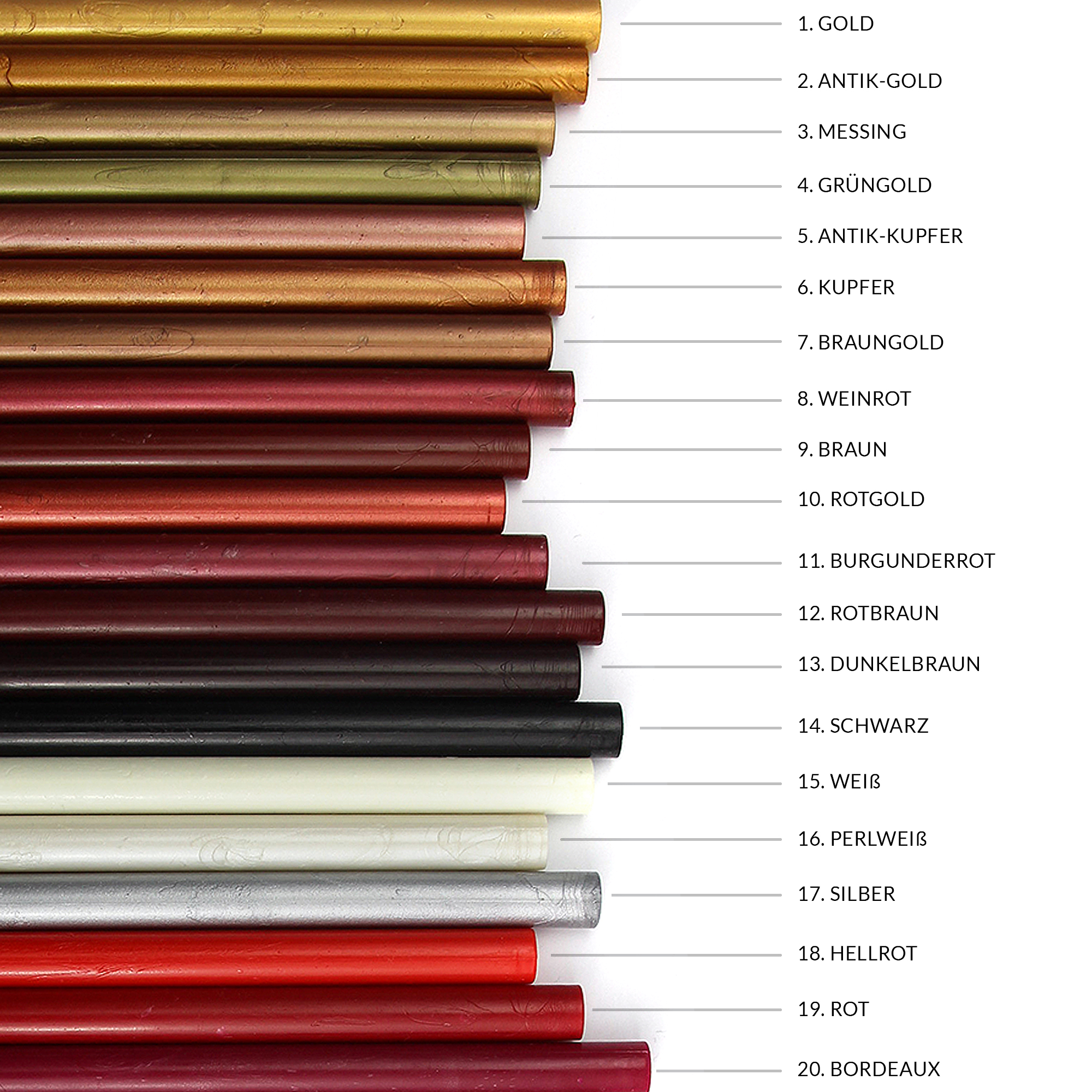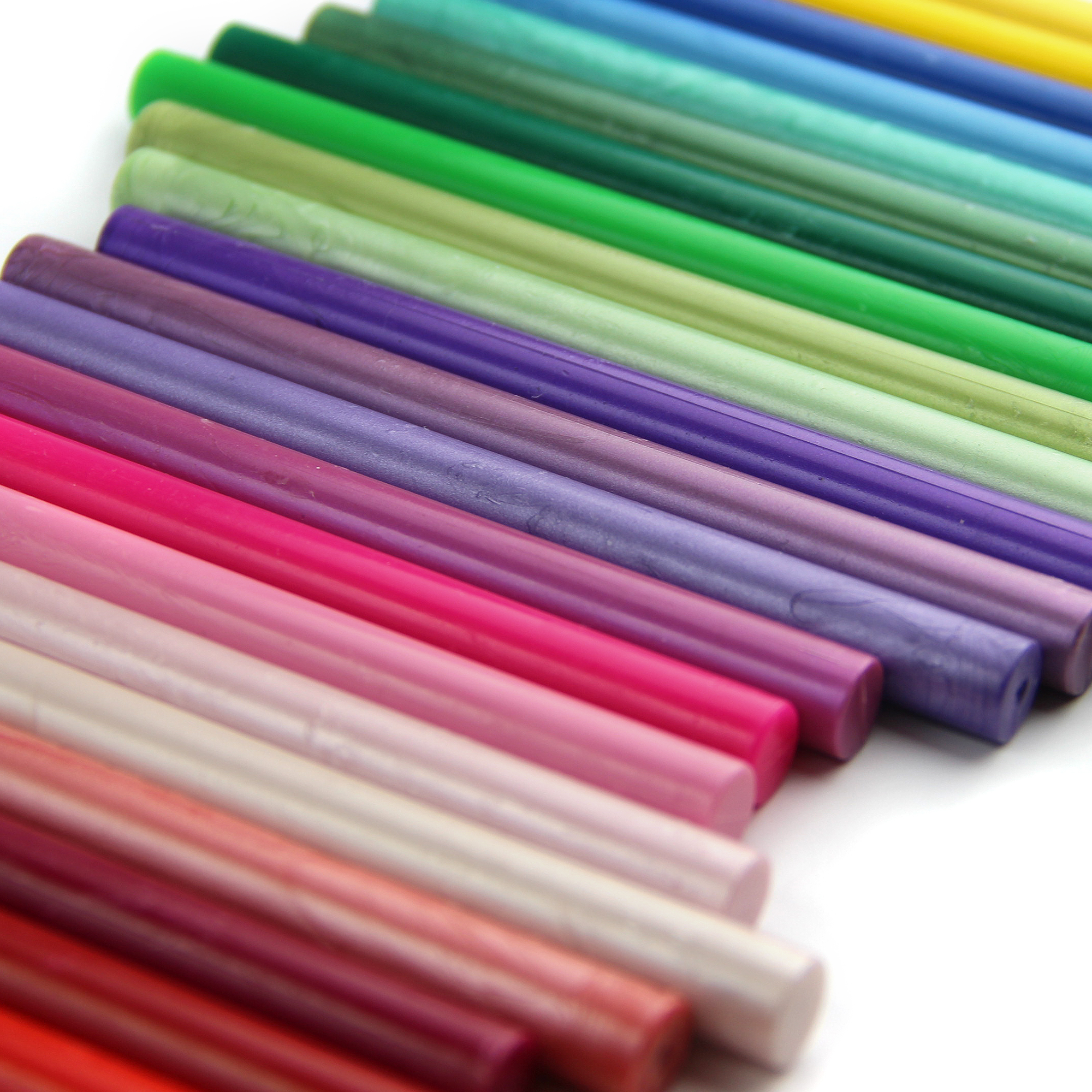 Siegelwachs-Stangen für Heißklebepistole (11 mm Durchmesser) zur schnellen und einfachen Herstellung von Wachssiegel. Das Siegelwachs ist flexibel, nicht zerbrechlich und eignet sich ideal für Einladungskarten, Geschenkverpackungen, Postversand und zum Dekorieren von Papeterie u. v. m.