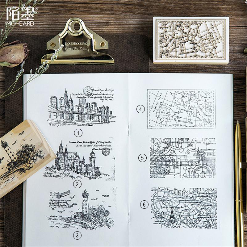 Stadtkarte, Weltkarte und Gebäude Motivstempel für B-Journal, Scrapbooking, DIY Projekte und Textildruck
