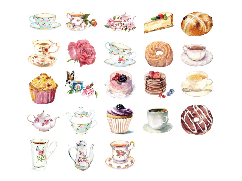 Teepause Sticker, Sticker-Set "Afternoon Tea" mit 45 mini Stickern