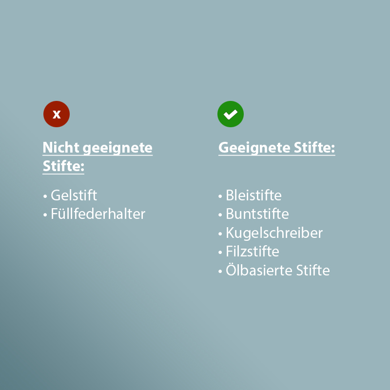 (Tinte trocknet auf dem glatten Material nicht richtig.)
