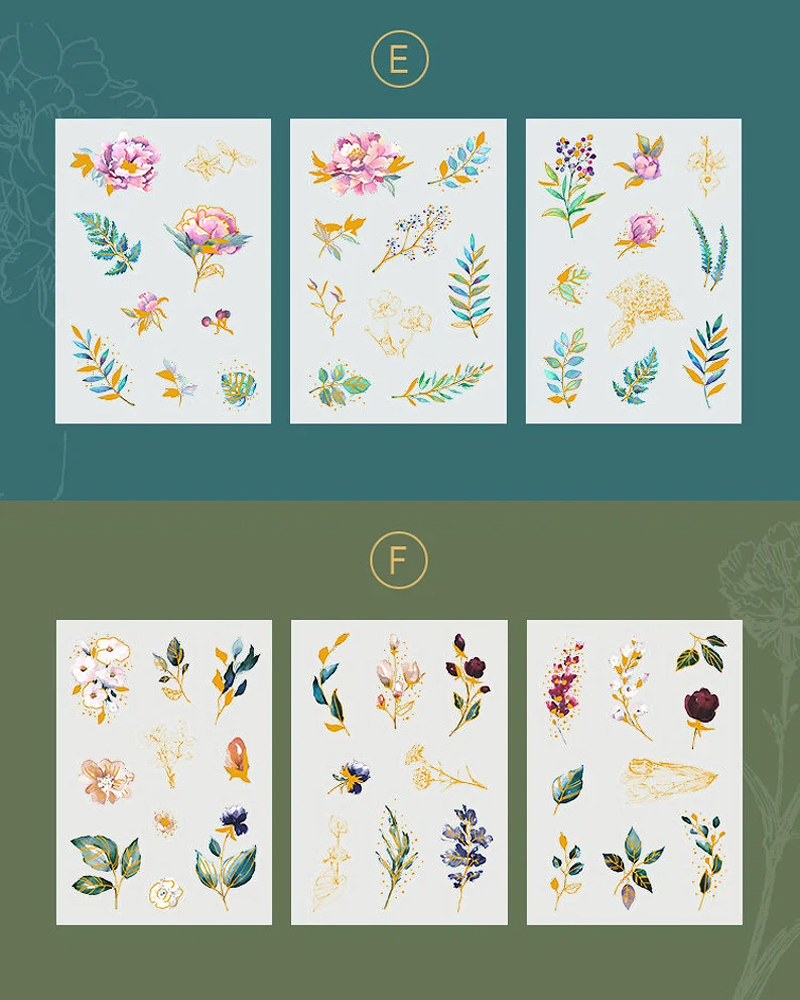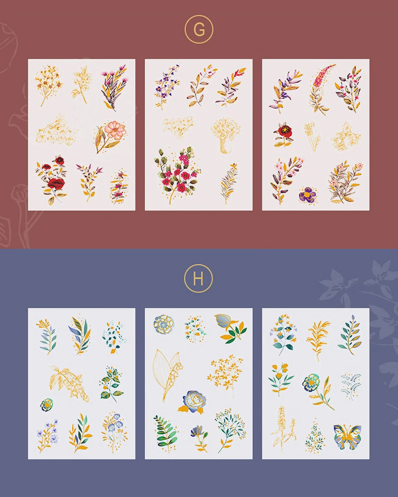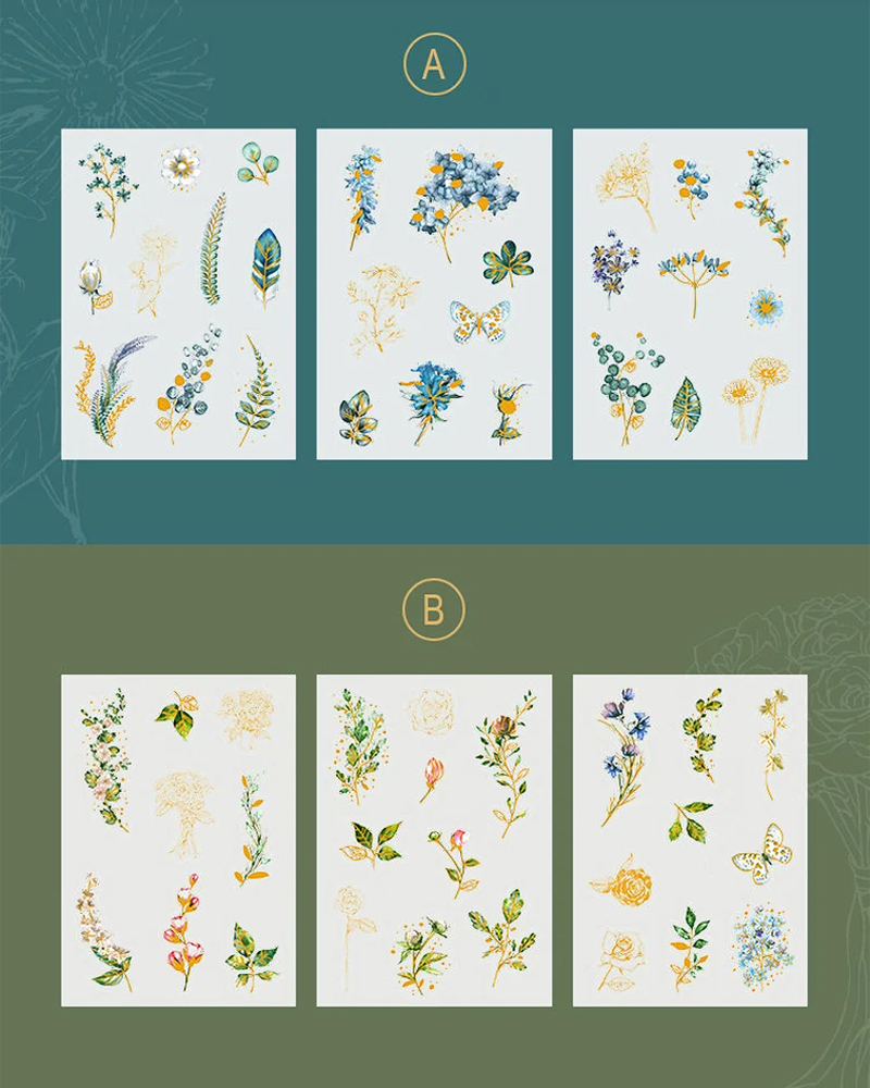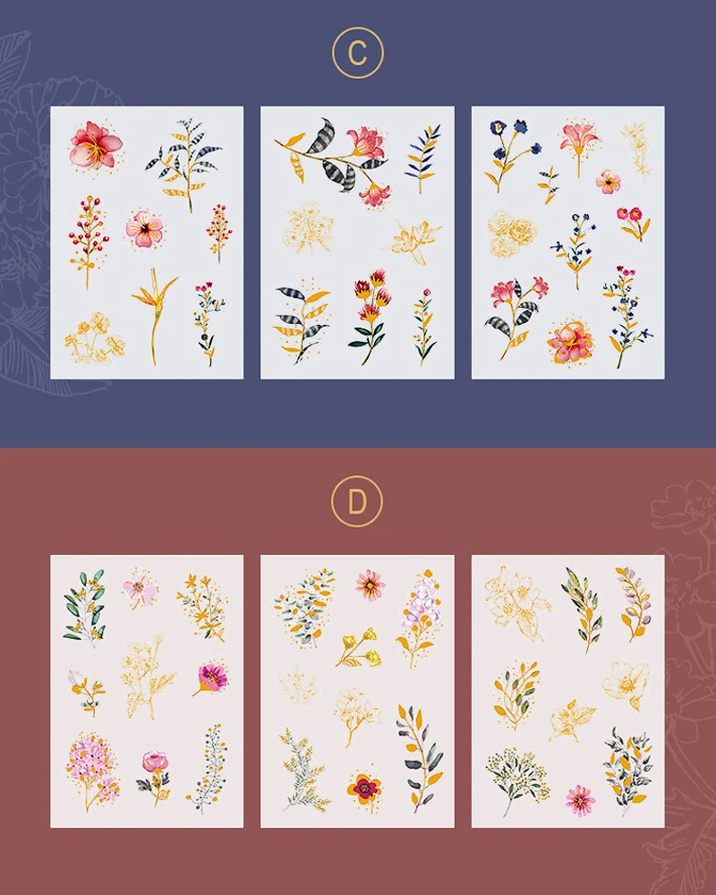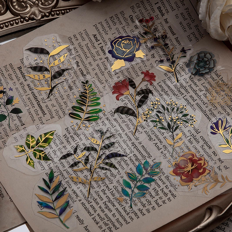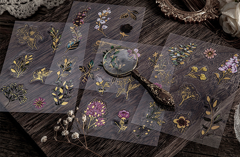 Transparente Sticker mit Goldfolie - Pflanzen und Blumen