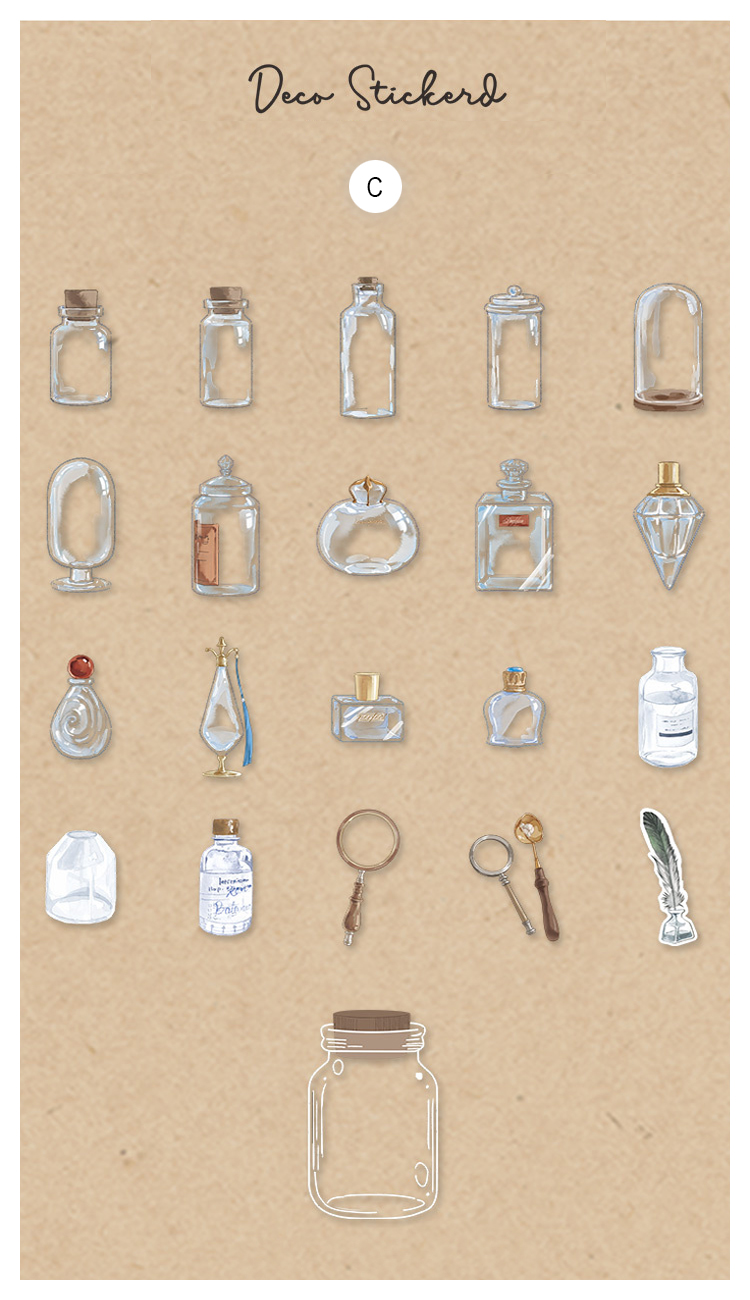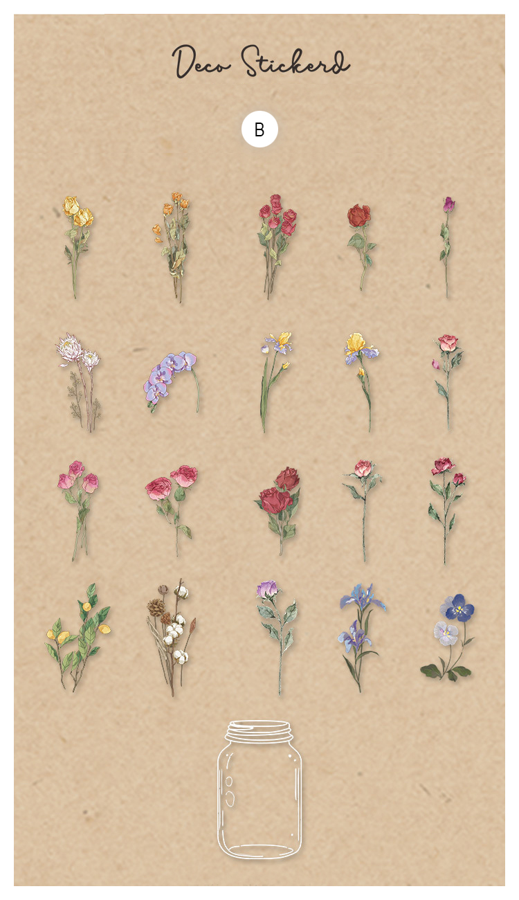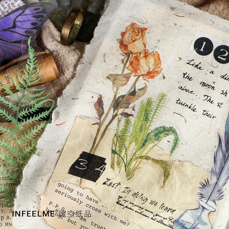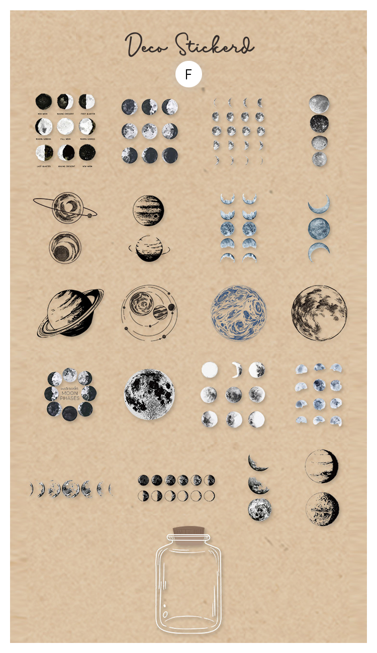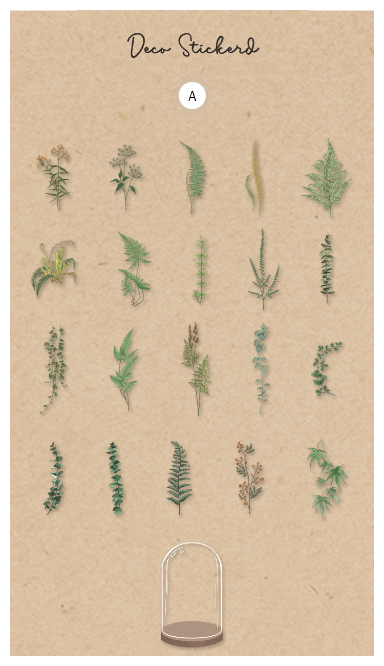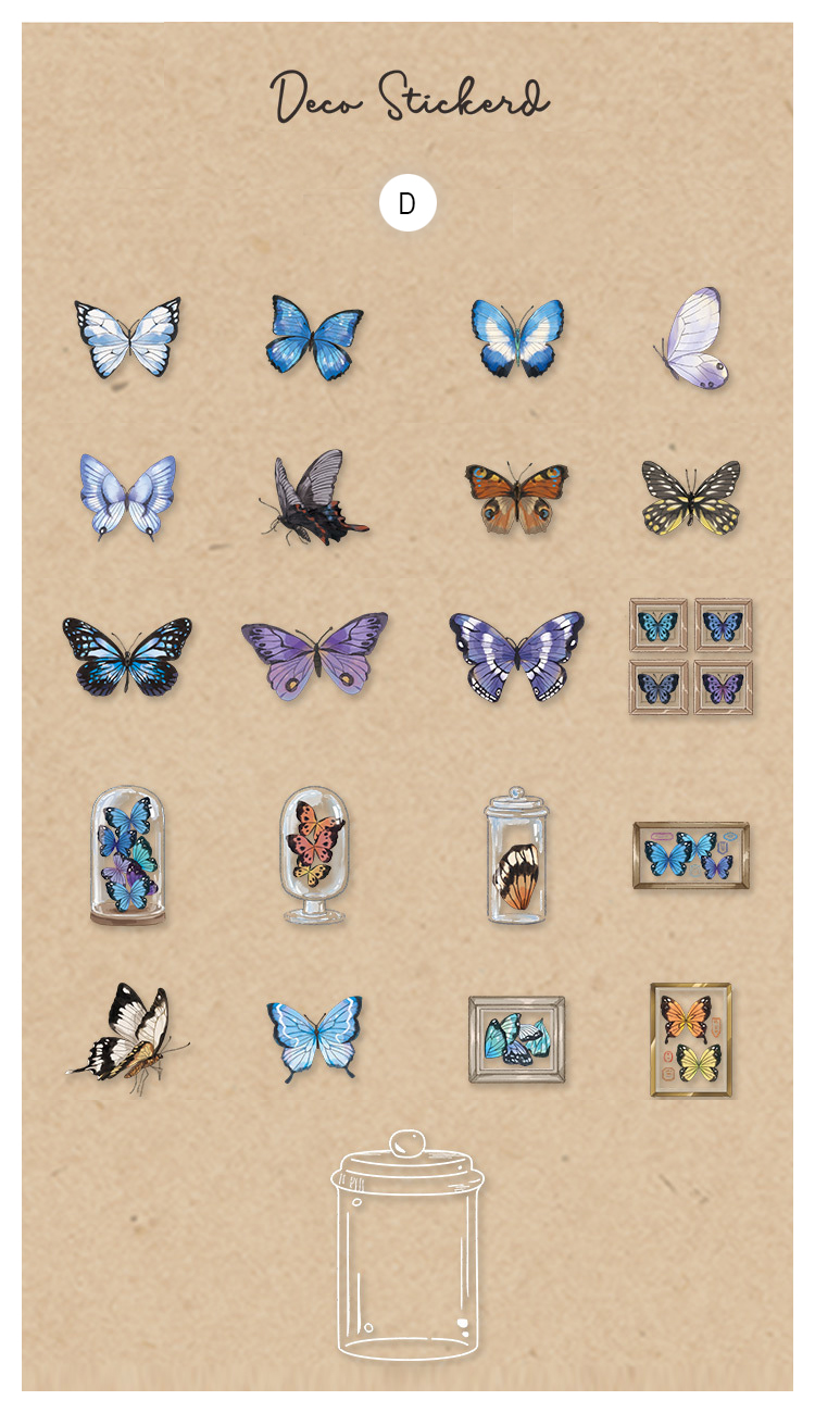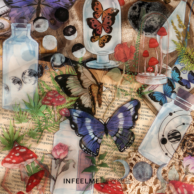 Transparente Sticker - Mond, Schmetterlinge, Baumwolle, Pilze, Pflanzen und Blumen