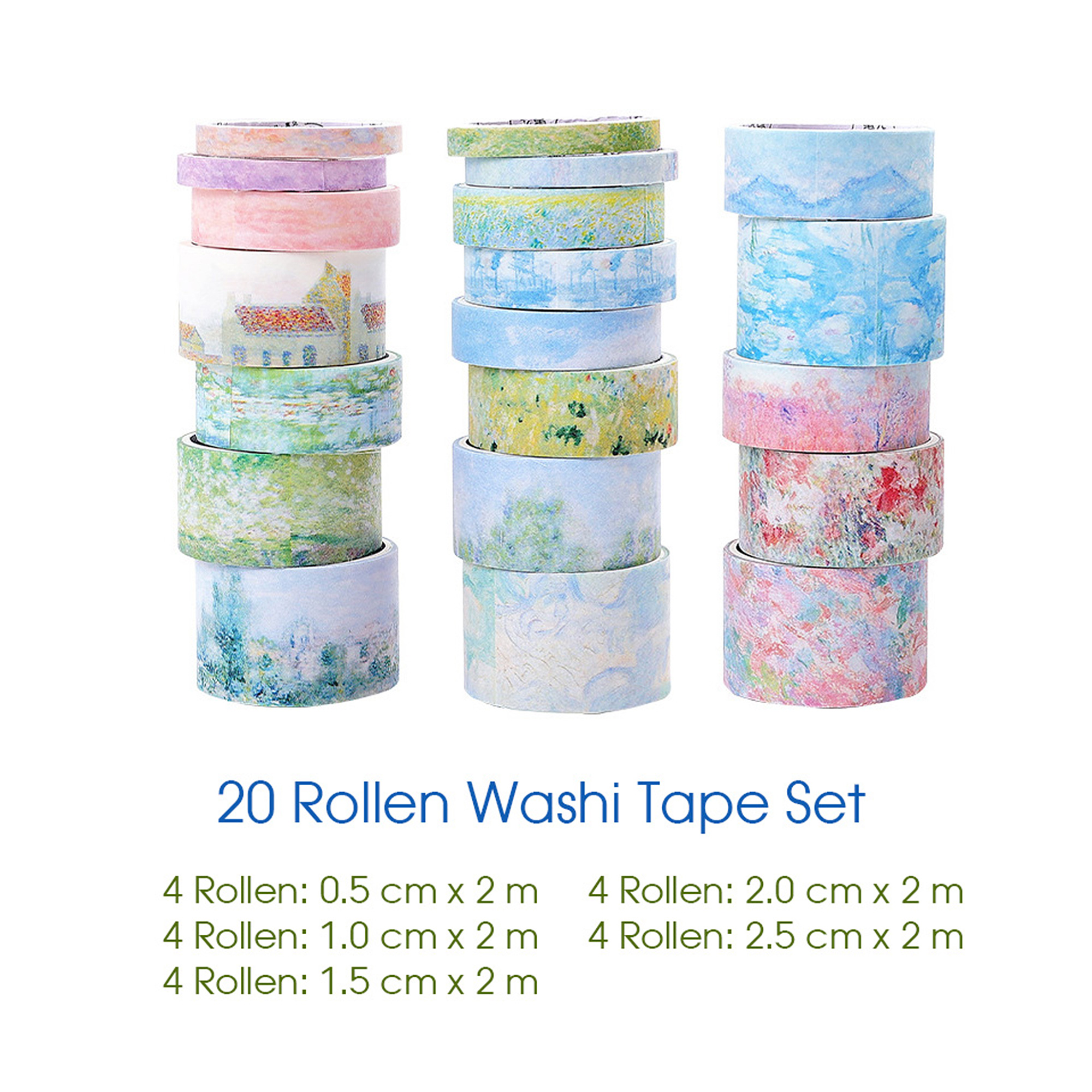 - 20 Rollen Washi Tape in 5 verschiedenen Breiten