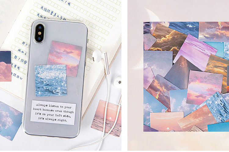 Die Wolken, Himmel und Licht Sticker können auf verschiedene Oberflächen zum Basteln und Dekorieren benutzt werden. Die Sticker sind ideal für Scrapbooking, B-Journal, DIY-Projekte, Briefumschläge, Geschenkverpackung, Fotoalben und zum Verzieren von Laptops und Smartphones.