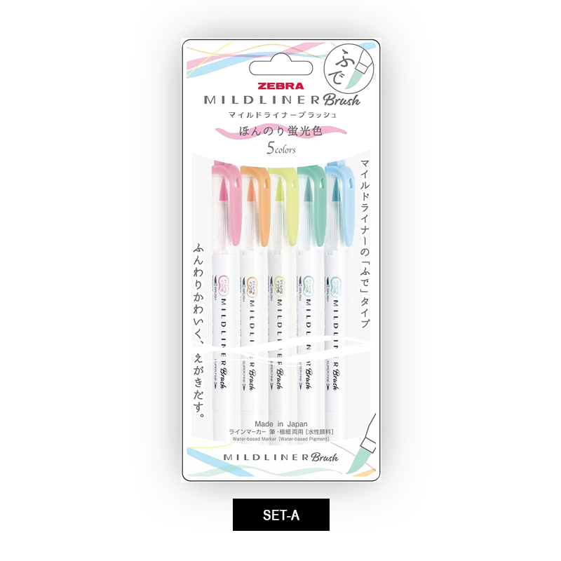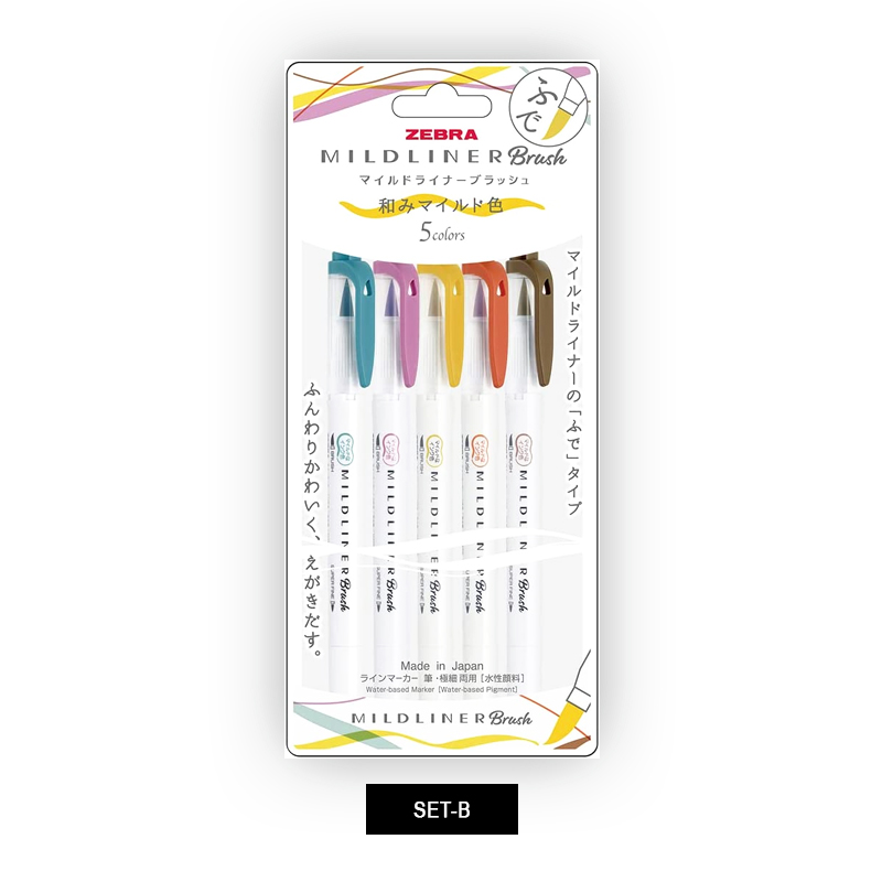 Zebra Mildliner Brush Stifte 5er-Set, doppelseitig