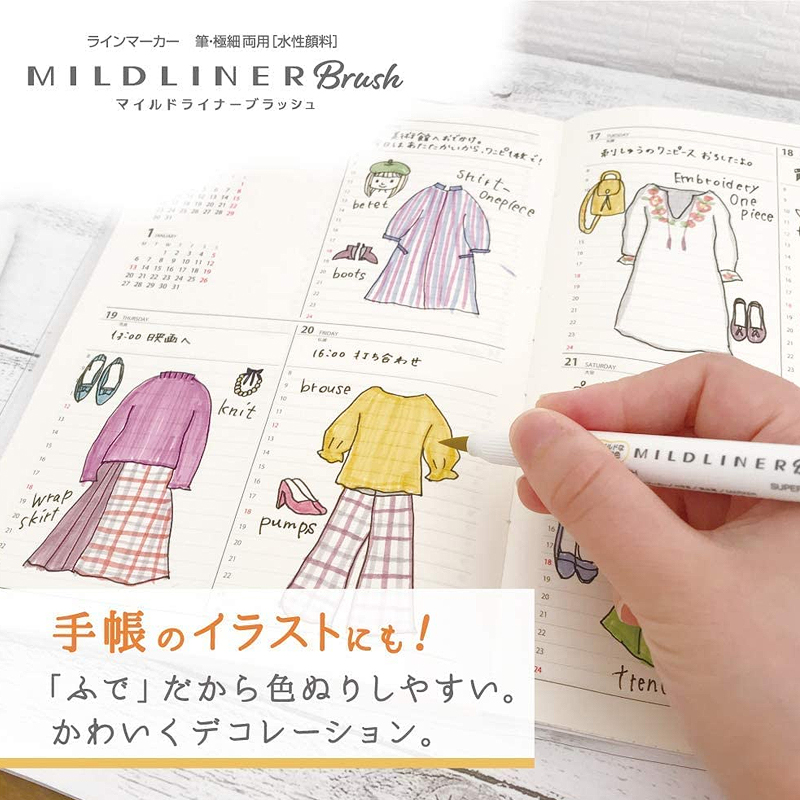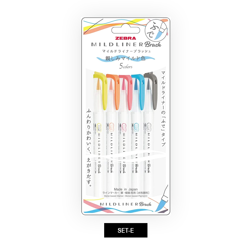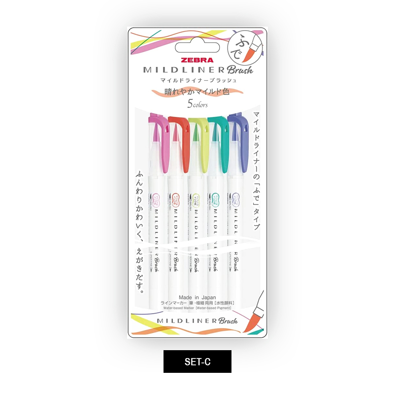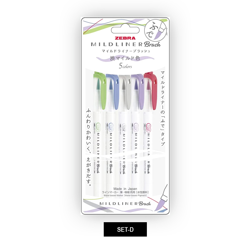 Die Mildliner Brush Stifte von Zebra sind sind doppelseitig und trocknen nicht leicht aus. Es sind insgesamt 25 Farben vorhanden als 5 verschiedene Sets. Die Stifte sind die japanische Originale.